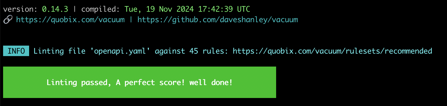 vacuum is completely free and open-source, built in Go and engineered from the ground up to be performant, avoiding some of the tricky legacy decisions that lead to Spectral not exactly being a race horse. Whilst there are other linters around, vacuum has the best of both worlds, it’s very quick, and it supports Spectral “rulesets”, so giving the best portability for rulesets being created or reused from elsewhere.