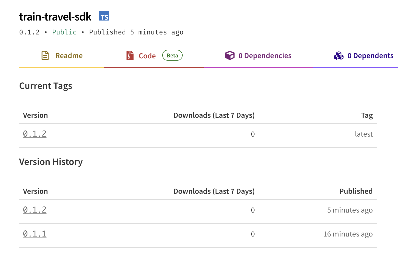 Now our train-travel-sdk actually exists online, and you can see how it’s going from here.