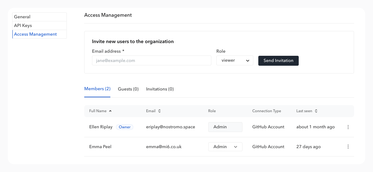 The roles allow you to precisely choose which permissions to assign to members of your organization. The details of permissions by role are available below: