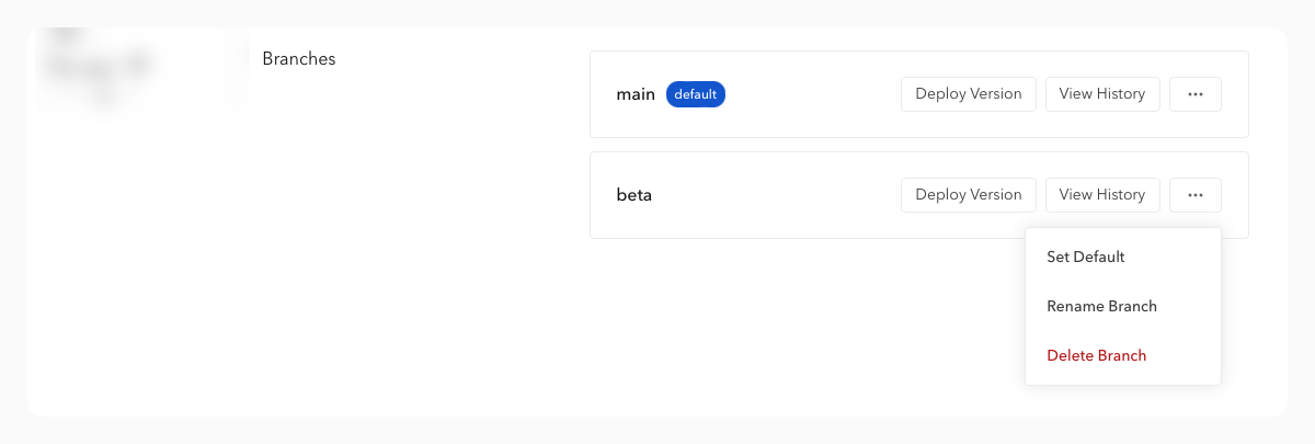 You can create as many branches as necessary, and each of these branches can receive its own deploys and has a distinct changelog from others. You can choose which branch will be displayed and used by default for deployments (when no target branch is designated).